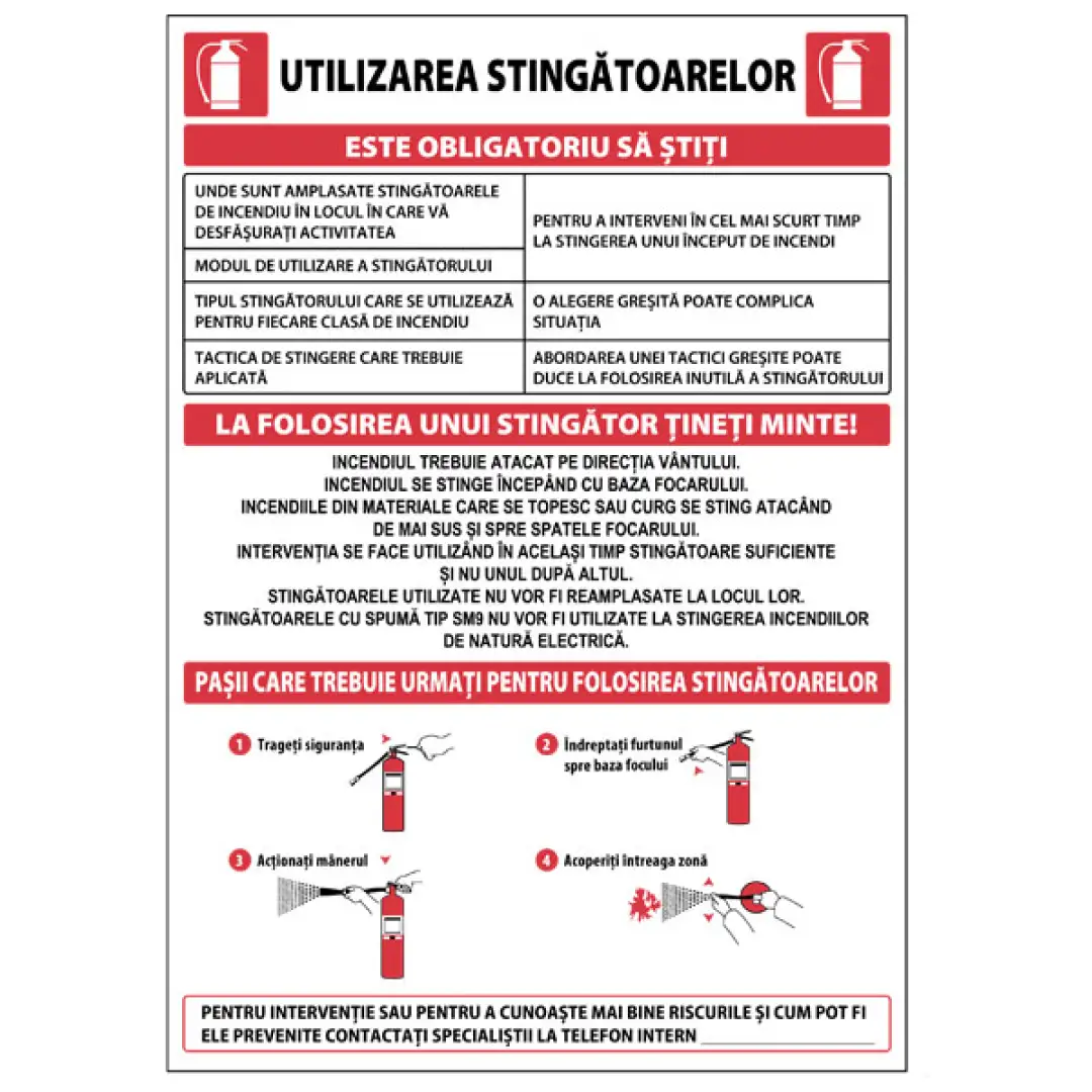 prim ajutor, intervenție inițială în caz de incendiu și semnalizarea clară a punctelor de siguranță.